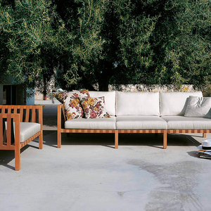 コレクションには、屋外用ソファラウンジチェアダイニングテーブルチェアサンベッドダブルラウンジャーが含まれます。構造はスリムでありながら堅牢で、クッションは快適さと秩序を兼ね備えています。洗練されたカラーパレットが建築的な静けさを引き立てます。
